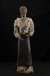 Dondolaš-en trugen Kopfbedeckung mit tierischen Merkmalen, hielten Axt